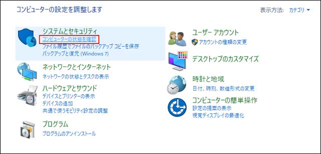 表示されている「システムとセキュリティ」内より、「コンピューターの状態を確認」をクリック。