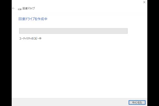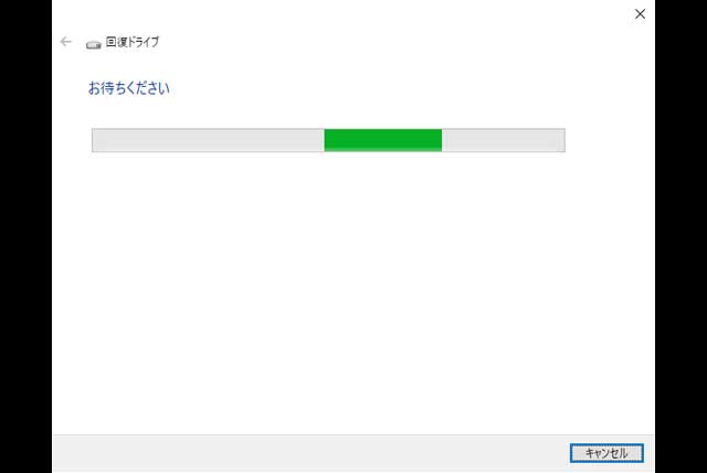 回復ドライブの作成にかかる時間はパソコンによって異なります。